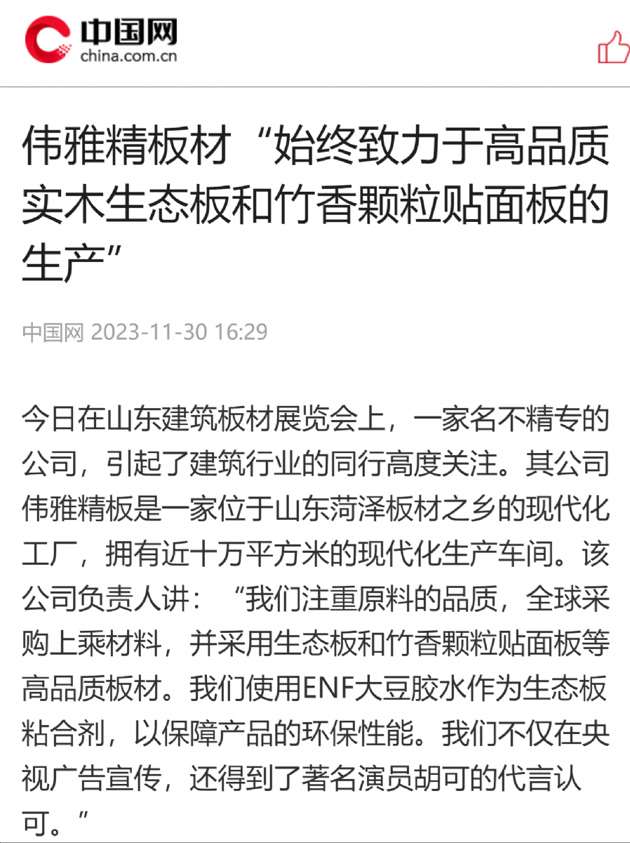 中国网展现伟雅板材...